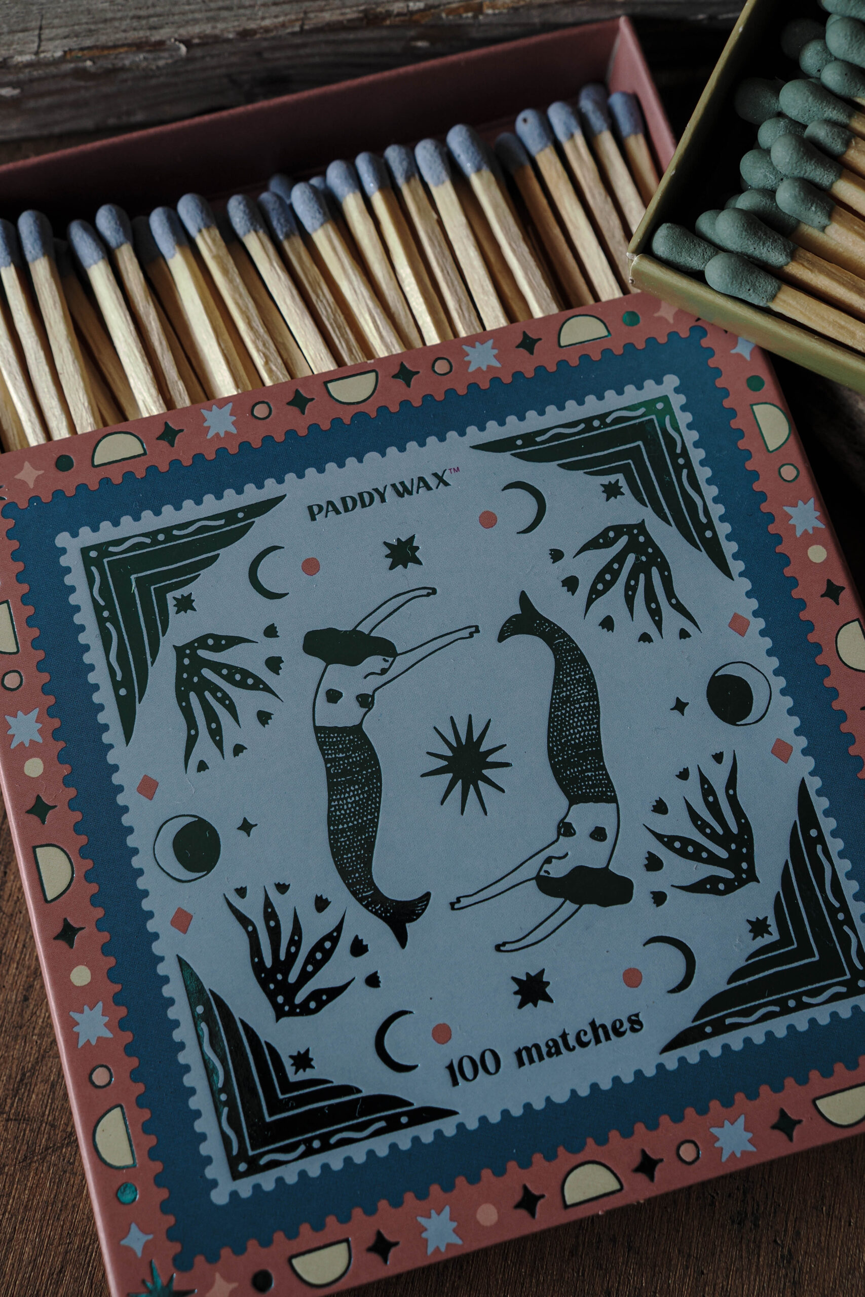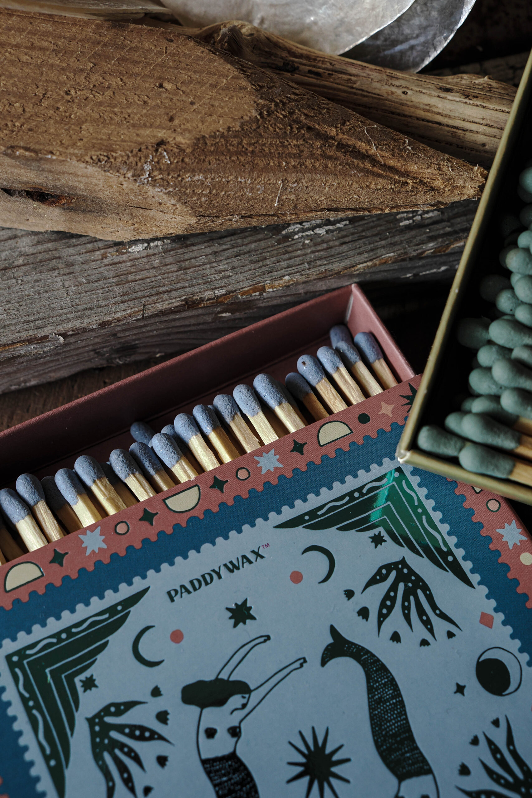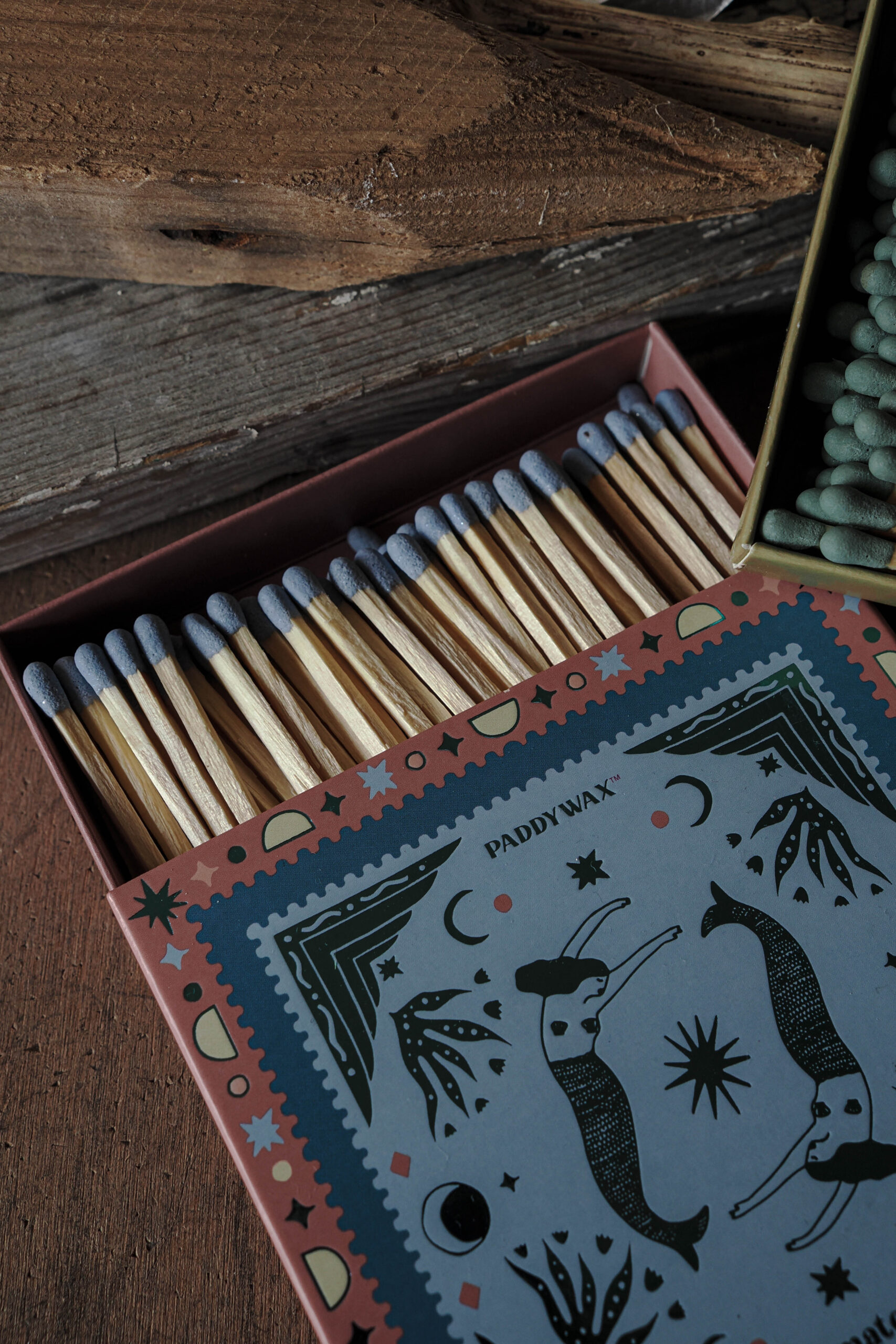 Every candle has its match. These sets of 100 matches come in a hand illustrated work of art matchbox. Each box features metallic or glossy accents, two strikers, and all 100 match tips are colored to match the design. Jumbo matches are a perfect accessory to gift with any Paddywax candle.