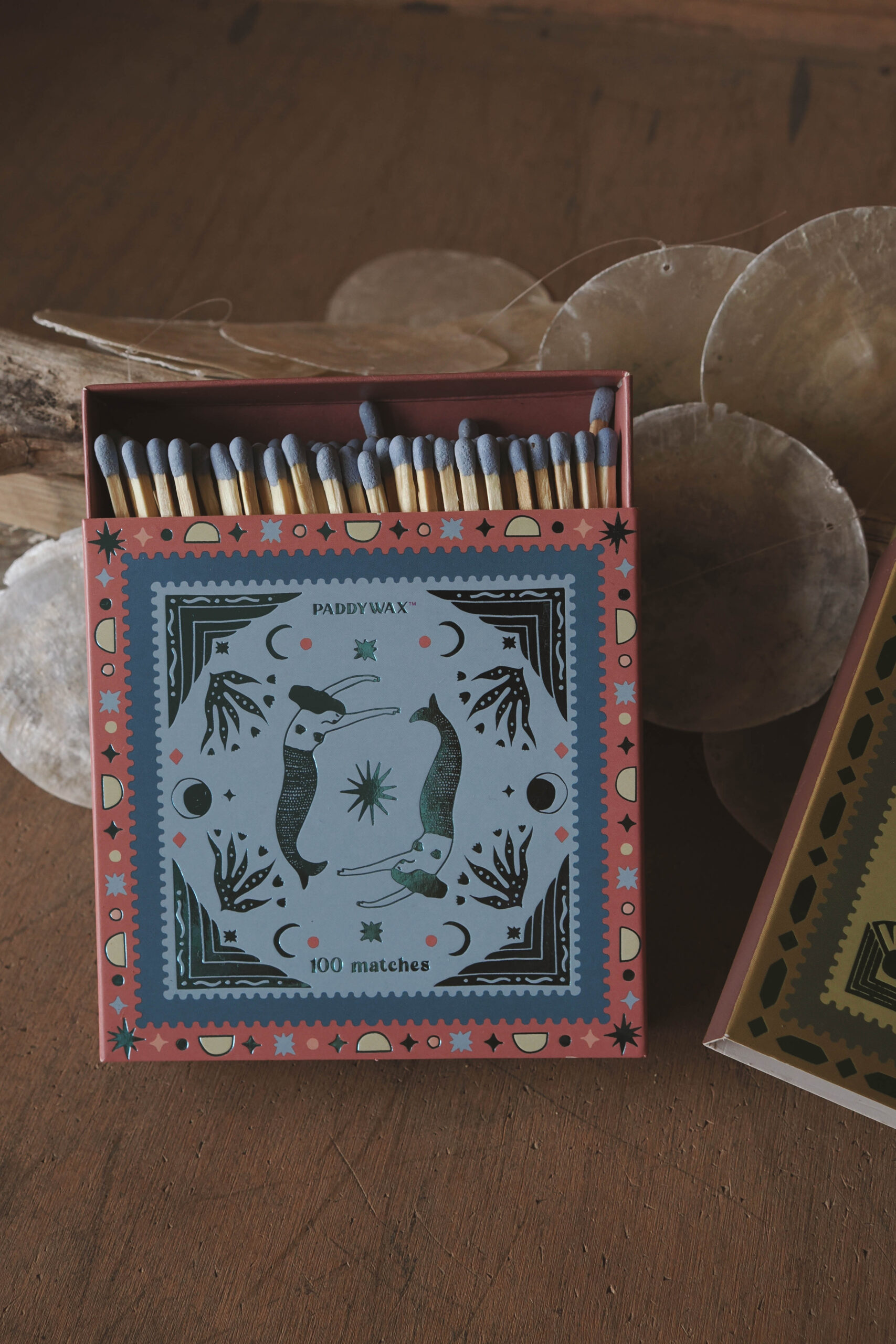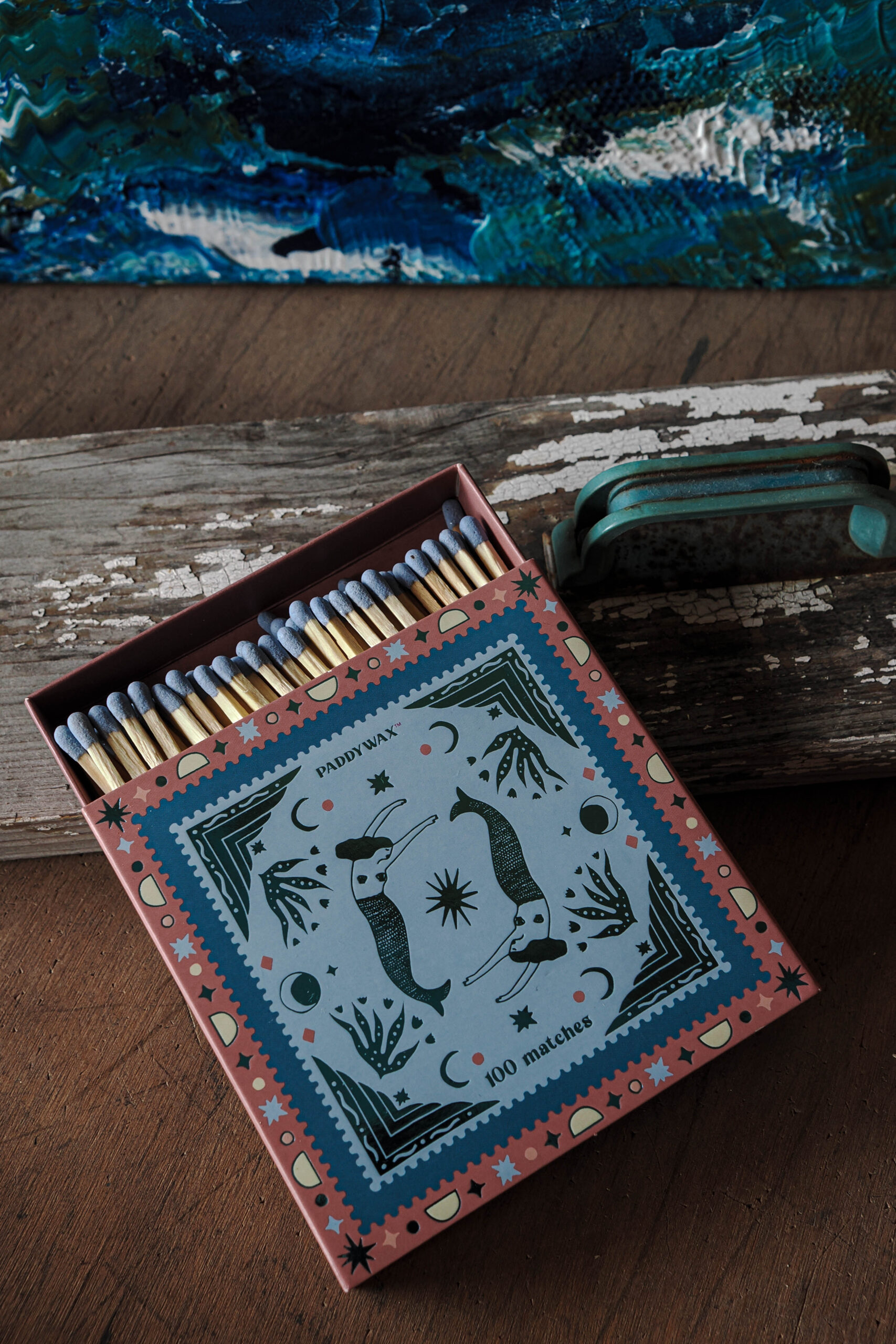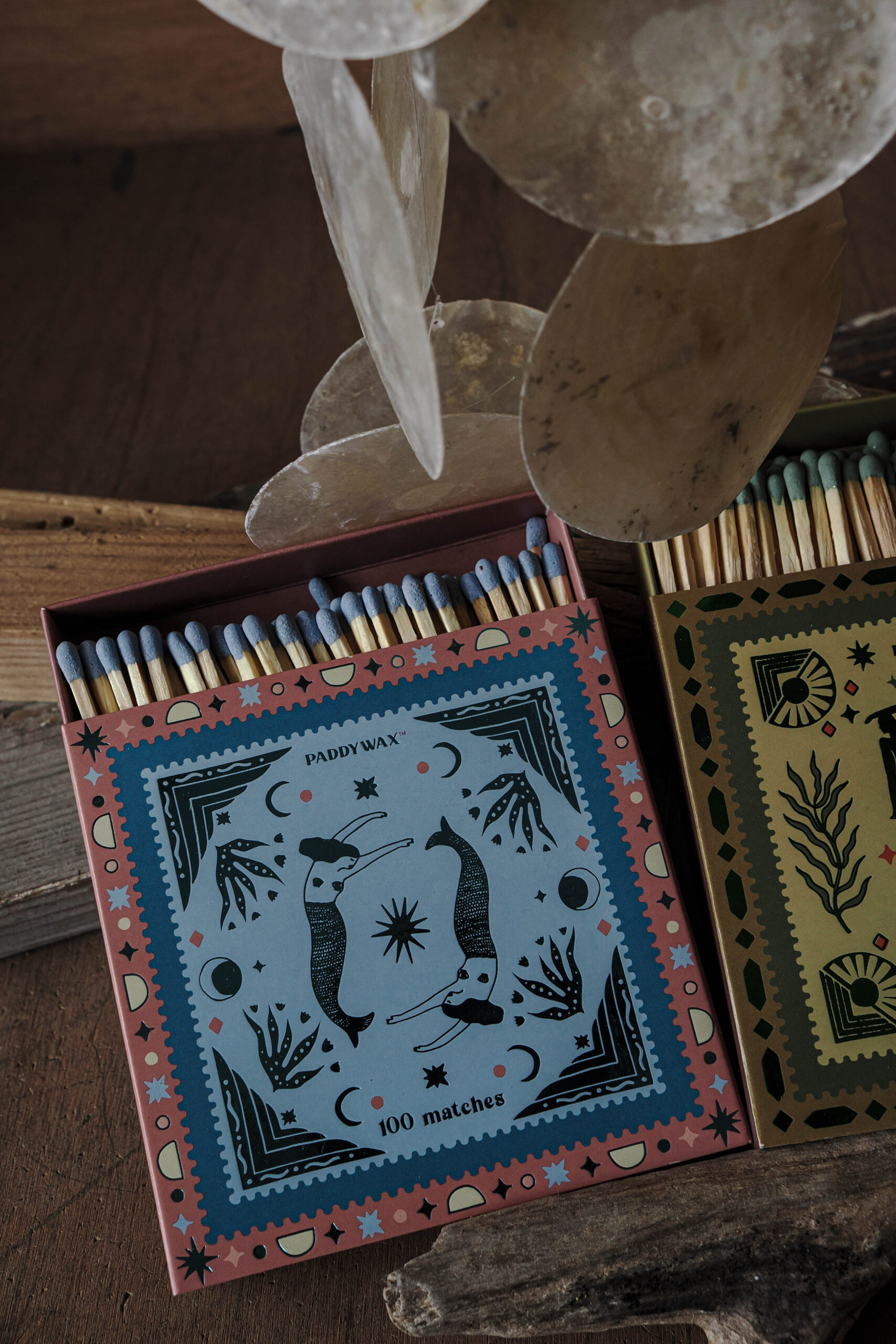 Every candle has its match. These sets of 100 matches come in a hand illustrated work of art matchbox. Each box features metallic or glossy accents, two strikers, and all 100 match tips are colored to match the design. Jumbo matches are a perfect accessory to gift with any Paddywax candle.