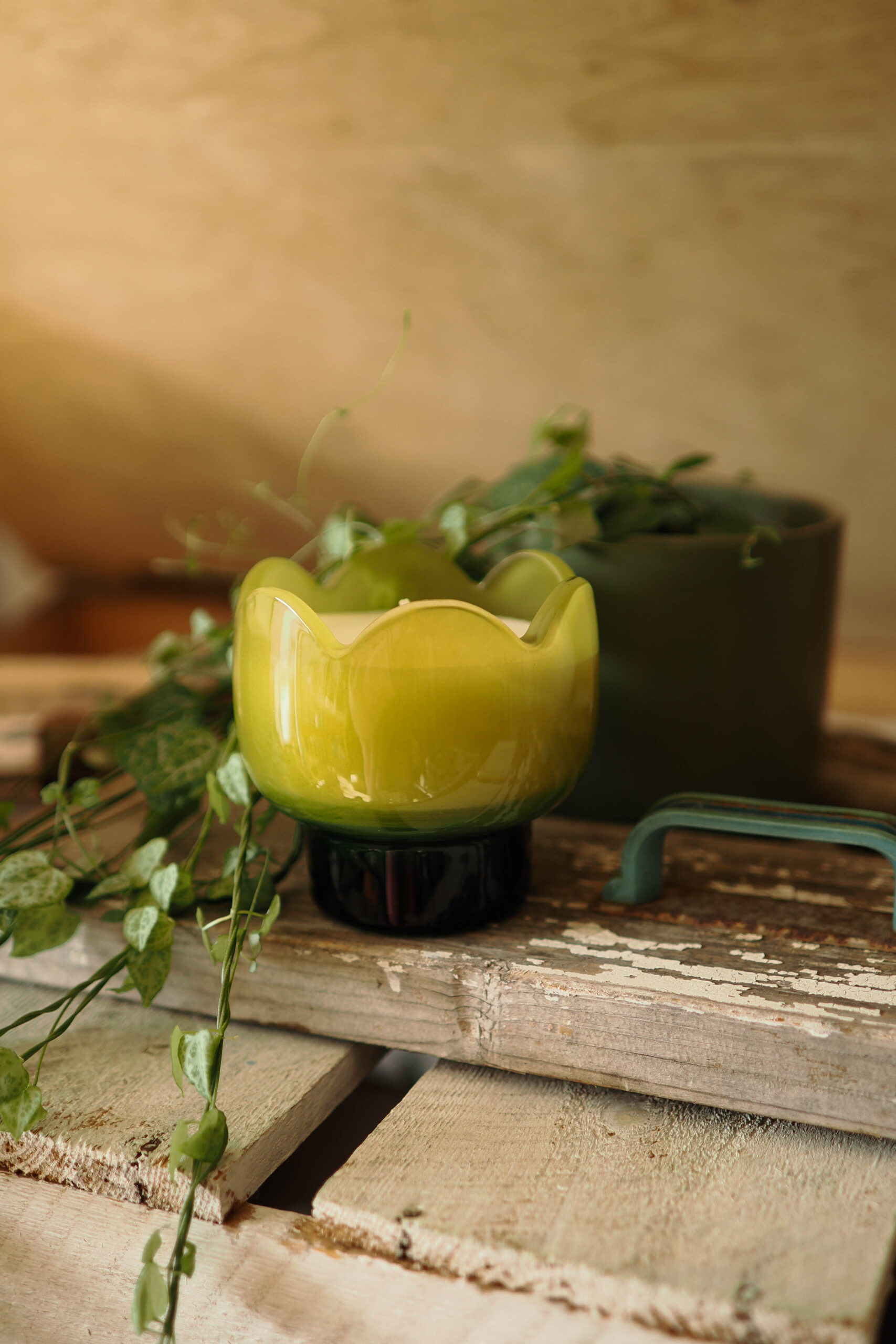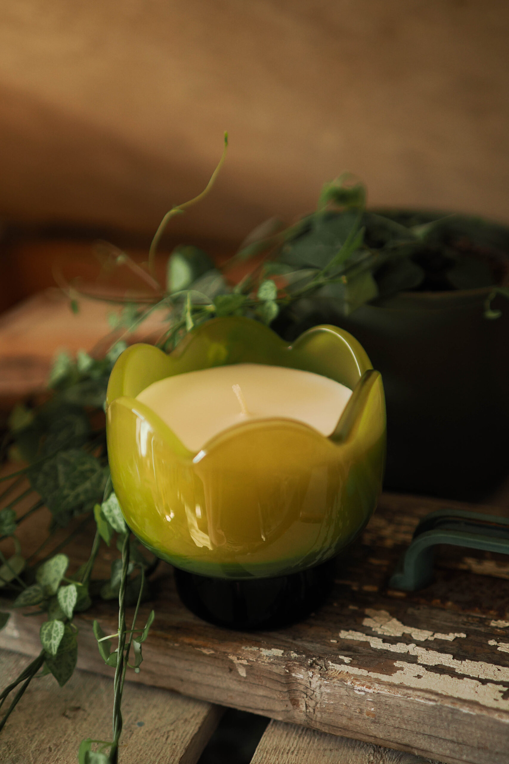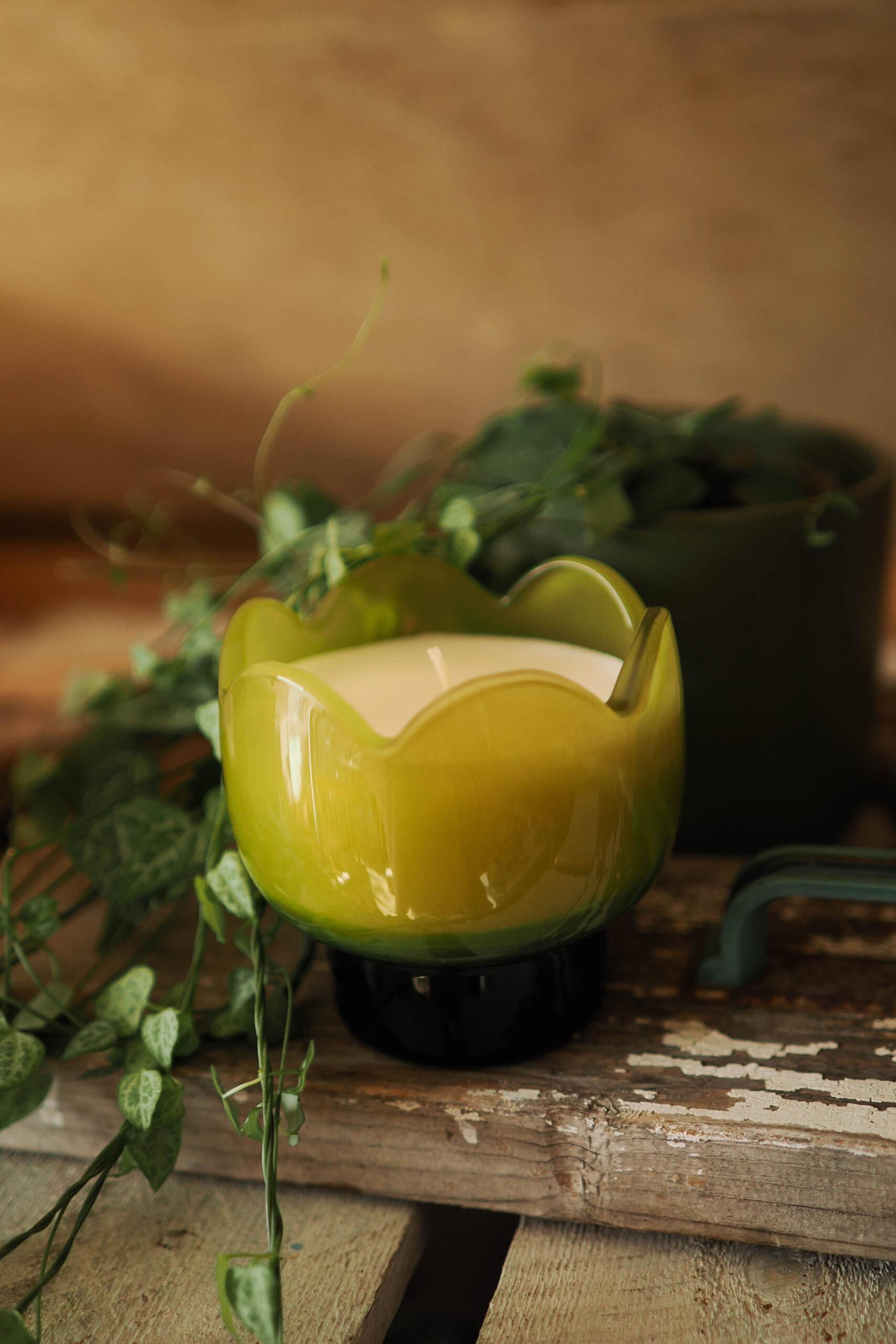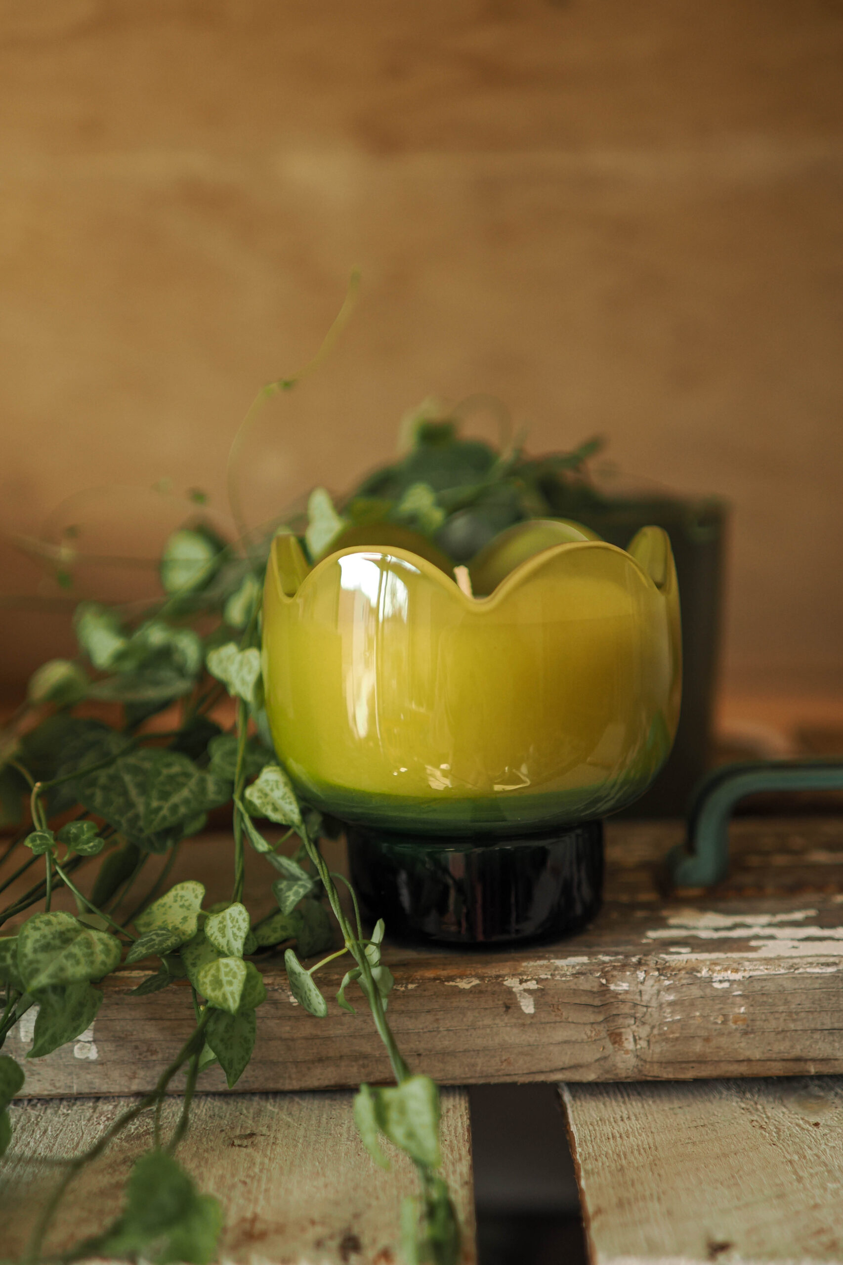 Fresca, brillante y con un estilo exquisito, esta vela de soja de vidrio con forma de tulipán aporta una fragancia limpia y estimulante, además de un toque decorativo a cualquier espacio. Presentada en un escultural recipiente de vidrio con forma de tulipán y un acabado verde brillante, está diseñada para lucir tan deslumbrante tanto encendida como apagada.